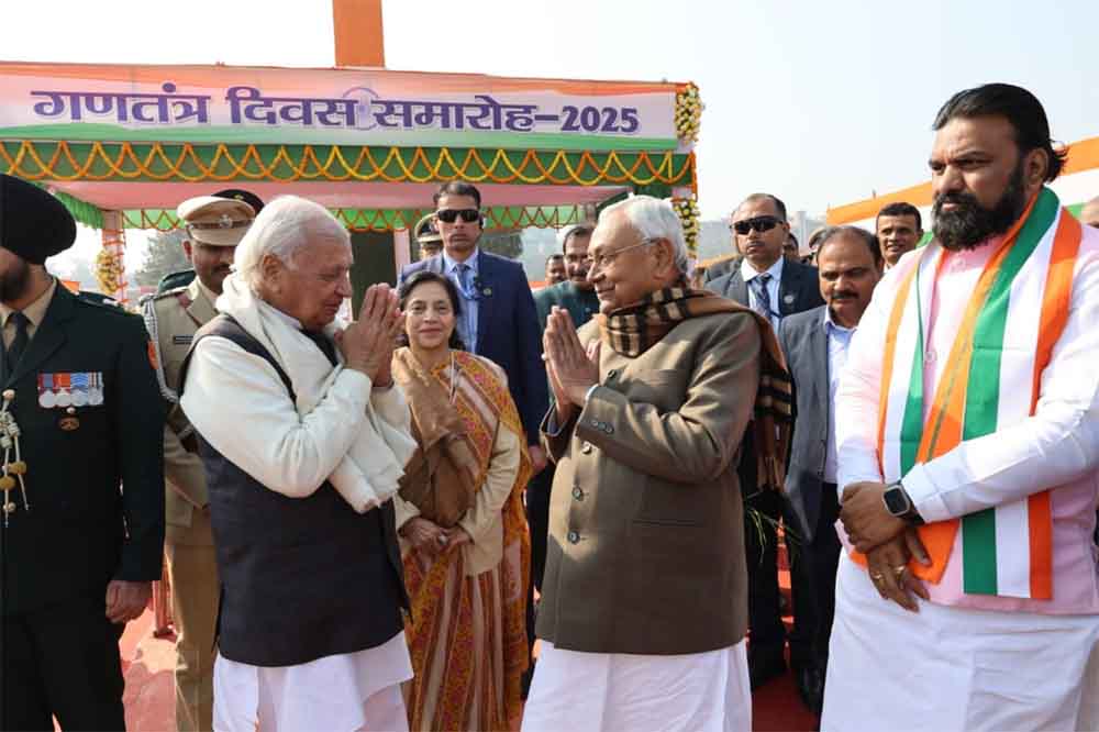 मुख्यमंत्री श्री नीतीश कुमार ने आज 76वें गणतंत्र दिवस केअवसर पर 1, अण्णे मार्ग में झंडोत्तोलन किया। इस अवसर पर मुख्यमंत्री ने सशस्त्र टुकड़ियोंकी सलामी ली तथा सभी को गणतंत्र दिवस की शुभकामनायें दी। इस अवसर पर बच्चों कोमुख्यमंत्री ने जलेबी खिलाई और उनके उज्ज्वल भविष्य की कामना की।