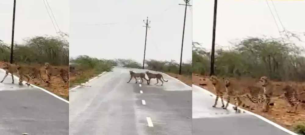 जौरा के पास डैम के करीब सड़क पर घूमते हुए दिखाई दिए पांच चीते