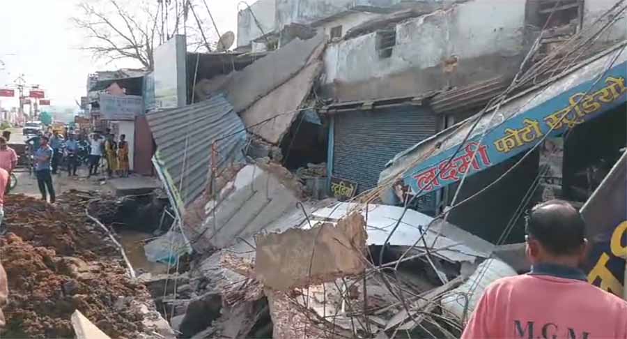 चार दशक पहले साडा के समय अल्का कॉम्प्लेक्स में बनी चार दुकानें अचानक भर-भराकर गिरी