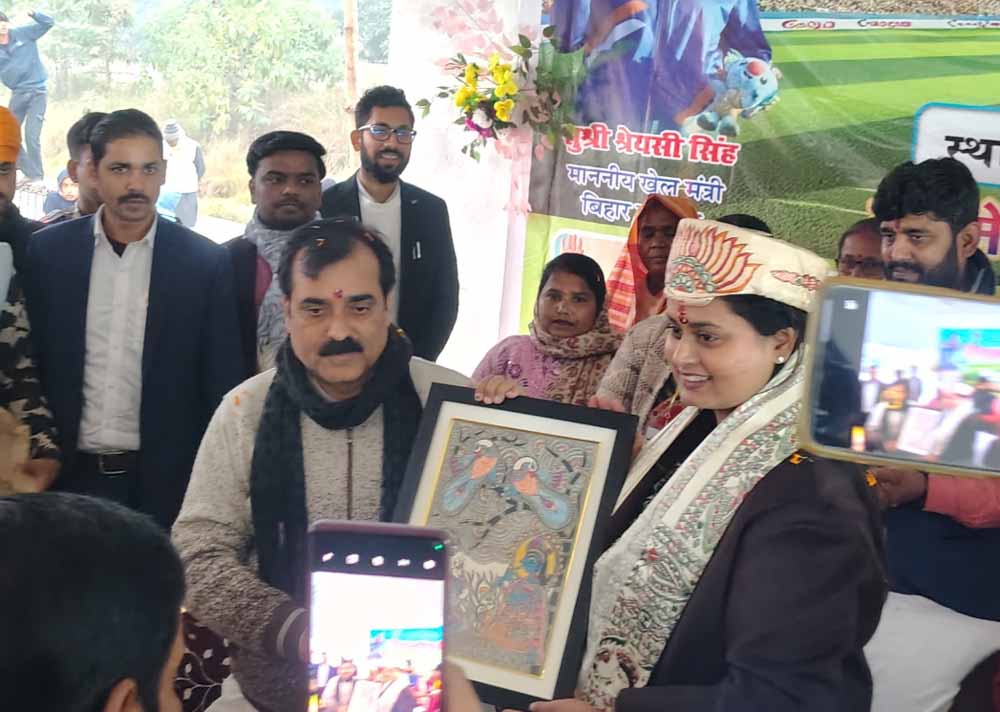 दरभंगा जिले के जाले प्रखंड में आयोजित काजी मौलाना मुजाहिद उल इस्लाम मेमोरियल जिला स्तरीय क्रिकेट टूर्नामेंट 2025 का फाइनल मुकाबला भव्य और उत्साहपूर्ण माहौल में संपन्न हुआ। फाइनल मैच का उद्घाटन बिहार सरकार की खेल मंत्री सुश्री श्रेयशी सिंह ने किया। दरभंगा पहुंचने पर पूर्व मंत्री सह जाले विधायक डॉ. जीवेश कुमार मिश्रा सहित आयोजन समिति के सदस्यों ने खेल मंत्री का मिथिला की परंपरा के अनुसार पाग, चादर और मखाना की माला पहनाकर गर्मजोशी से स्वागत किया।