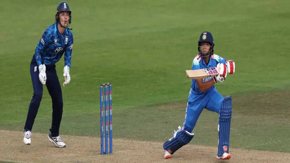 भारत ने धीमी शुरुआत की है। 7 ओवर के बाद भारत का स्कोर 29/1 है। प्रतिका फिलहाल 23 गेंदों में 13 रन बनाकर क्रीज पर हैं। हरलीन ने 9 गेंदों में 8 रन बना लिए हैं।