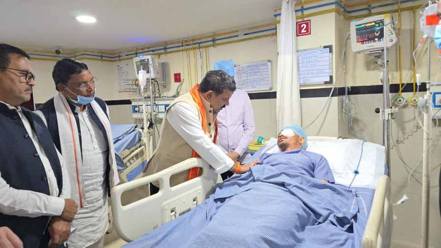 पुलिस-नक्सली मुठभेड़ में घायल जवानों से मिलने अस्पताल पहुंचे गृहमंत्री विजय शर्मा