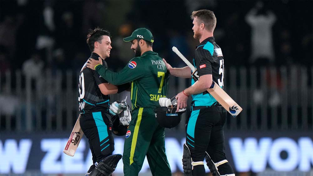 ओपनर्स के मुकाबले न्यूजीलैंड का मिडिल ऑर्डर थोड़ा सुस्त दिखा, मगर कप्तान माइकल ब्रेसवेल ने अंत में 26 गेंदों पर नाबाद 46 रन बनाकर टीम को 220 के स्कोर तक पहुंचाया। पिछले मैच में पाकिस्तान की जीत के हीरो रहे टॉप-3 बल्लेबाज इस बार कुल 4 ही रन जोड़ पाए। मोहम्मद हारिस 2 तो हसन नवाज और कप्तान सलमान आगा मात्र 1-1 रन ही बना पाए। इरफान खान 24 और अब्दुल समद 44 को छोड़कर सभी पाकिस्तानी बल्लेबाज सिंगल डिजिट पर आउट हुए। पाकिस्तान 16.2 ओवर में 105 रनों पर ढेर हो गया।