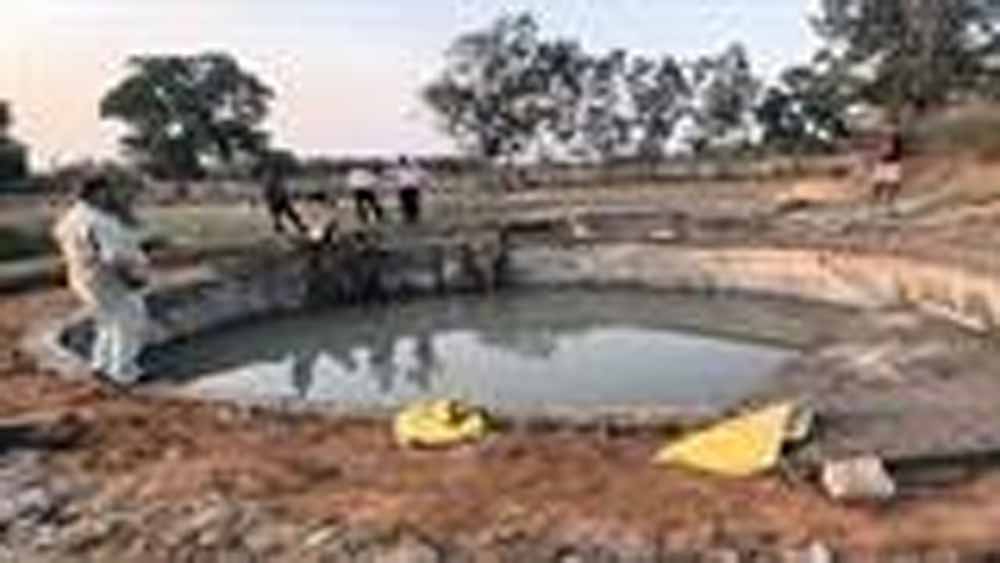 ग्राम पंचायत धुलकोट में फार्म पौंड निर्माण