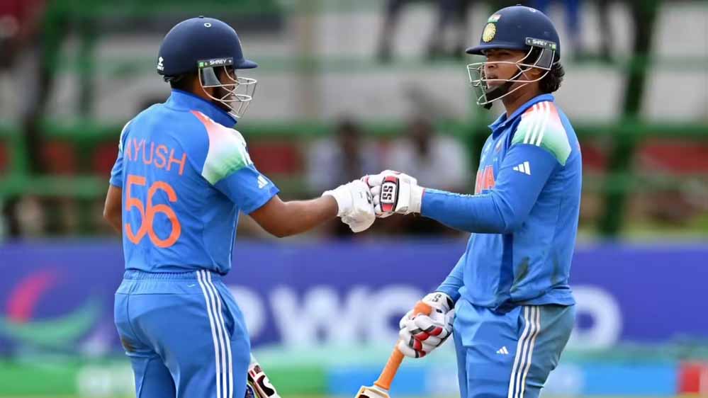 भारत की प्लेइंग-11: वैभव सूर्यवंशी, आयुष म्हात्रे (कप्तान), वेदांत त्रिवेदी, विहान मल्होत्रा, अभिज्ञान कुंडू (विकेटकीपर), एरॉन जॉर्ज, कनिष्क चौहान, आरएस अम्बरीश, खिलान पटेल, हेनिल पटेल और मोहम्मद एनान.
