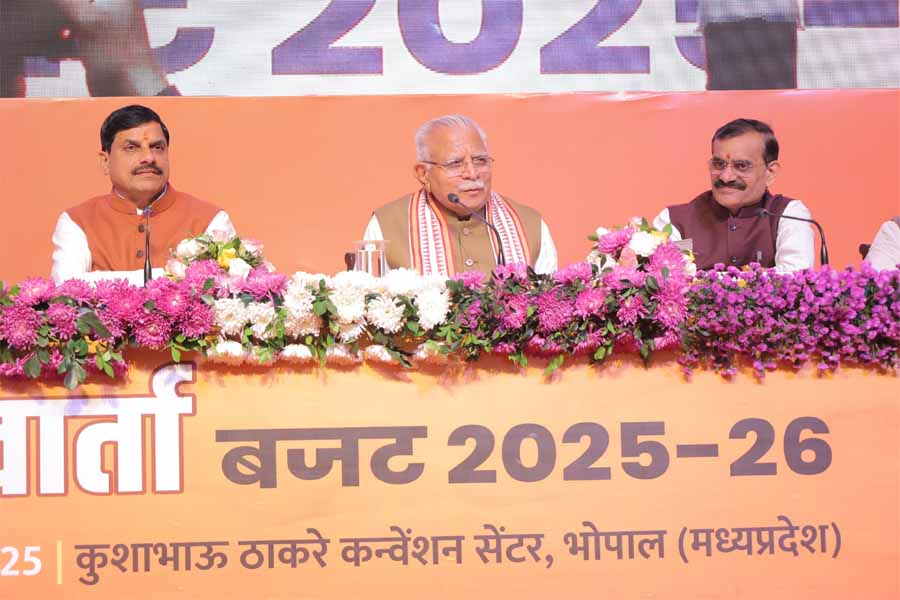 भारत सरकार के परमाणु ऊर्जा, आवास एवं शहरी कार्य विभाग के कैबिनेट मंत्री श्री मनोहरलाल खट्टर, मुख्यमंत्री डॉ. मोहन यादव एवं भारतीय जनता पार्टी के प्रदेश अध्यक्ष व खजुराहो सांसद श्री विष्णुदत्त शर्मा ने रविवार को कुशाभाऊ ठाकरे सभागार में वर्ष 2025-26 के केंद्रीय बजट को लेकर पत्रकार-वार्ता को संबोधित किया। केंद्रीय कैबिनेट मंत्री श्री मनोहरलाल खट्टर ने कहा कि कुछ नया और बड़ा सोचना प्रधानमंत्री श्री नरेंद्र मोदी जी के स्वभाव की विशेषता है। उन्होंने 2047 तक भारत को एक विकसित राष्ट्र बनाने का संकल्प लिया है, लेकिन विकसित राष्ट्र के कई मापदंड होते हैं। केंद्र सरकार का बजट इन सभी मापदंडों पर देश को आगे बढ़ाने वाला बजट है।