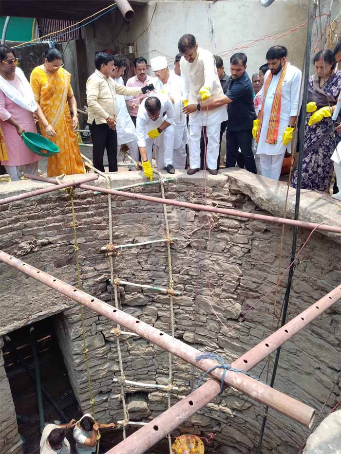 उप मुख्यमंत्री श्री शुक्ल ने भूतेश्वर मंदिर में बने प्राचीन बावड़ी कुआँ से कचरा निकाल कर सफाई एवं जीर्णोद्धार अभियान प्रारम्भ किया। उन्होंने प्रांगण के विकास कार्यों की जानकारी ली और कहा कि प्राचीन सिद्ध स्थलों व मंदिरों का संरक्षण महत्वपूर्ण है। बताय ा गया कि भूतेश्वर महादेव मंदिर सोमनाथ मंदिर की तर्ज पर पत्थरों से निर्मित किया जा रहा है। उन्होंने कहा कि जल गंगा संवर्धन अभियान के तहत नगर पालिक निगम सागर द्वारा लगभग 100 कुओं की साफ-सफाई कर इन्हें पुनः उपयोगी बनाया जा रहा है इनके जल को पीने योग्य बनाने के लिये किये जा रहे सफाई व जीर्णोद्धार कार्य और ऐतिहासिक जलस्रोतों के संरक्षण का यह कार्य सराहनीय है। विधायक श्री शैलेन्द्र जैन, महापौर श्रीमती संगीता सुशील तिवारी, निगमाध्यक्ष श्री वृंदावन अहिरवार सहित स्थानीय जनप्रतिनिधि विभागीय अधिकारी/कर्मचारी उपस्थित रहे।