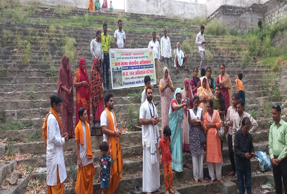 श्योपुर में जल गंगा संवर्धन अभियान में जन-अभियान परिषद की नवांकुर संस्था ने समाजसेवियों एवं स्वयं सेवी संस्थाओं के सहयोग से सीप नदी के गिर्राज घाट पर साफ-सफाई के लिए श्रमदान किया।