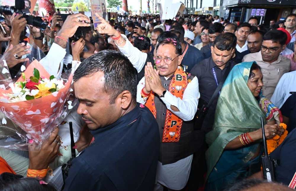 अपनी आठ दिन के जापान और दक्षिण कोरिया के विदेश दौरे के बाद आज मुख्यमंत्री विष्णु देव साय वापस रायपुर लौटे हैं।  साय के वापस लौटने पर आज एयरपोर्ट पर उनका भव्य स्वागत किया गया। छत्तीसगढ़ के पारंपरिक कर्मा और पंथी नृत्यों से पूरा एयरपोर्ट परिसर लगभग एक घंटे तक सराबोर रहा। लोगों की बड़ी संख्या में मौजूदगी ने मुख्यमंत्री साय की लोकप्रियता और उनके विदेश दौरे की सफलता को स्वयं ही बयां कर दिया।