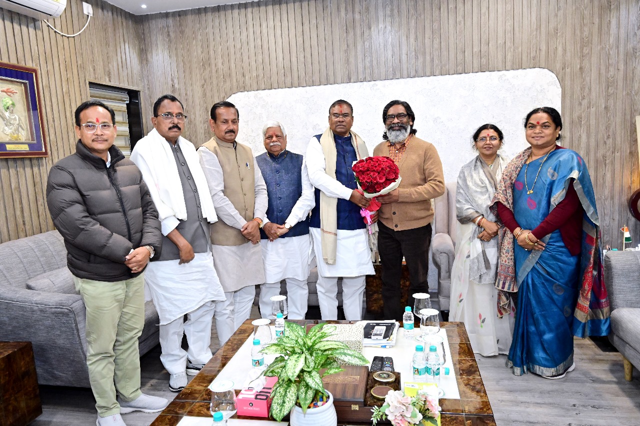 मुख्यमंत्री श्री हेमन्त सोरेन से रांची के अध्ययन भ्रमण पर आए अनुसूचित जाति एवं अनुसूचित जनजाति के  कल्याण हेतु गठित सात सदस्यीय संसदीय समिति के सदस्यों ने शिष्टाचार भेंट की। इस संसदीय समिति के अध्यक्ष एवं लोकसभा सदस्य डॉ फग्गन सिंह कुलस्ते  के साथ सदस्य डॉ मल्लू रवि (लोकसभा सांसद), वीडी राम (लोकसभा सांसद), प्रतिमा मंडल (लोकसभा सांसद), रवांग्वरा नारज़ारी (राज्यसभा सांसद), फूलो देवी नेताम (राज्यसभा सांसद) और देवेन्द्र प्रताप सिंह (राज्यसभा सांसद) शामिल थे।