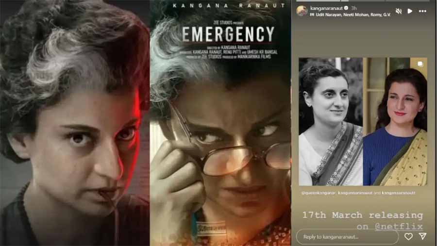 ज़ी स्टूडियोज़ और मणिकर्णिका फ़िल्म्स निर्मित, फिल्म 'इमरजेंसी' की कहानी वर्ष 1975 पर आधारित है, जब भारत में इमरजेंसी लागू हुई थी। इस फिल्म में कंगना रनौत, पूर्व प्रधानमंत्री इंदिरा गांधी के किरदार में हैं। फिल्म इमरजेंसी 17 जनवरी को रिलीज हुयी थी। अब यह फिल्म ओटीटी प्लेटफॉर्म नेटफ्लिक्स पर रिलीज होने जा रही है।