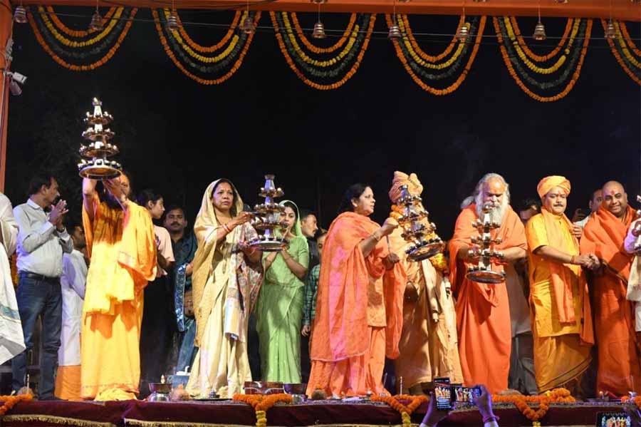 इस दिव्य आरती में आचार्य महामंडलेश्वर स्वामी विशोकानंद महाराज, महामंडलेश्वर स्वामी प्रेमानंद गिरि, महामंडलेश्वर नवल गिरी महाराज, महामंडलेश्वर स्वामी शैलेशानंद महाराज, संत गुरुशरण महाराज (पंडोखर सरकार), रामबालक दास महाराज, स्वामी ज्ञान स्वरूपानंद अक्रिय जी महाराज सहित बड़ी संख्या में श्रद्धालु, साधु-संत, अधिकारी और कर्मचारी मौजूद रहे.