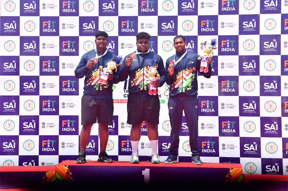 मैदानी स्पर्धाओं में शक्ति प्रदर्शन का दौर जारी रहा, जहाँ पुरुष वर्ग की तवा फेंक (डिस्कस थ्रो) स्पर्धा में गुजरात के मकवाना दानिश दिलीपभाई ने 44.83 मीटर की दूरी तय कर स्वर्ण पदक जीता। छत्तीसगढ़ के लिए गौरव का क्षण तब आया जब स्थानीय खिलाड़ी सिद्धार्थ नागेश ने 35.56 के स्कोर के साथ रजत पदक जीतकर घरेलू दर्शकों का उत्साह बढ़ा दिया। तीसरे स्थान पर ओड़िसा के चंद्रय मुर्मू रहे ।