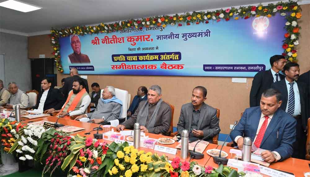 प्रगति यात्रा के दूसरे चरण के दौरान आज मुख्यमंत्री नीतीश कुमार ने समस्तीपुर जिले में चल रही विकासात्मक योजनाओं के संबंध में समस्तीपुर के समाहरणालय सभाकक्ष में समीक्षात्मक बैठक की।समीक्षात्मक बैठक में समस्तीपुर जिला के जिलाधिकारी श्री रोशन कुशवाहा नेसमस्तीपुर जिले के विकास कार्यों का प्रस्तुतीकरण के माध्यम से विस्तृत जानकारी दी।