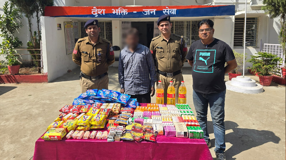 किरण किराना दुकान से से चोरी गया सामान साबुन, बिस्किट, नमकीन, तेल, सर्फ एक्सेल के पैकेट, राजश्री गुटखा, बीड़ी एवं सिगरेट के पैकेट (कुल मूल्य ₹5500/-)