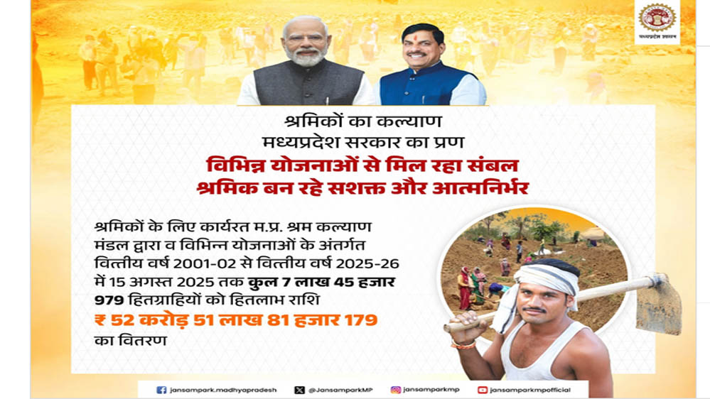 श्रमिक कल्याण को मिली नई दिशा, मध्यप्रदेश में दो वर्षों के उल्लेखनीय प्रयास