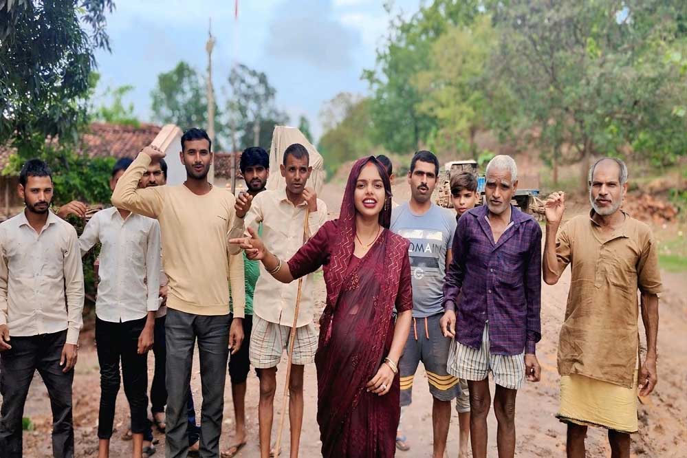 सड़क निर्माण के लिए ग्रामीणों संग आवाज उठाती गर्भवती लीला.
