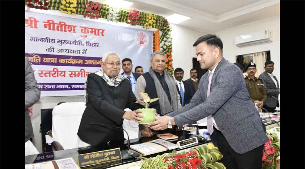 जिलाधिकारी ने बिहार स्टूडेंट क्रेडिट कार्ड योजना, मुख्यमंत्री निश्चय स्वयं सहायता भत्ता योजना, कुशल युवा कार्यक्रम, हर घर नल का जल एवं उनका अनुरक्षण, हर घर तक पक्की गली-नाली, मुख्यमंत्री ग्रामीणसोलर स्ट्रीट लाइट योजना, हर खेत तक सिंचाई का पानी, कृषि फीडर का निर्माण, मुख्यमंत्रीकृषि विद्युत कनेक्शन योजना, मुख्यमंत्री उद्यमी योजना, उच्चतर शिक्षा हेतु महिलाओं कोप्रोत्साहन, स्वास्थ्य उपकेंद्र में टेली मेडिसिन के माध्यम से चिकित्सा परामर्श, पशु चिकित्सासेवाओं की डोर स्टेप डिलीवरी एवं पंचायत सरकार भवन के निर्माण की अद्यतन स्थिति केसंबंध में मुख्यमंत्री को विस्तृत जानकारी दी। इसके अलावा हर पंचायत में 10$2 विद्यालय,ग्राम पंचायत, नगर पंचायत में खेल-कूद को बढ़ावा देने हेतु स्पोर्ट्स क्लब का गठन, प्रत्येकपंचायत में खेल का मैदान, मुख्यमंत्री ग्राम संपर्क योजना (अवशेष), मुख्यमंत्री ग्रामीण सेतुयोजना, शहरी एवं ग्रामीण क्षेत्रों में स्वयं सहायता समूहों का गठन, राजस्व प्रशासन मेंपारदर्शिता, दाखिल खारिज/परिमार्जन/परिमार्जन प्लस एवं जल-जीवन-हरियाली के तहतजीर्णाेद्धार कराए गए सार्वजनिक कुओं, पोखर तथा तालाबों की अद्यतन स्थिति के संबंध मेंजिलाधिकारी ने मुख्यमंत्री को विस्तृत जानकारी दी। समीक्षा बैठक में मुख्यमंत्री के समक्षजनप्रतिनिधियों ने अपने-अपने क्षेत्र की समस्याएं भी रखीं।