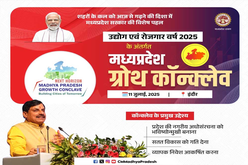 इंदौर में आयोजित यह ग्रोथ कॉन्क्लेव न केवल प्रदेश की शहरी योजनाओं को रफ्तार देगा, बल्कि निवेशकों को एक मजबूत और विश्वसनीय मंच भी प्रदान करेगा। मुख्यमंत्री डॉ. यादव की नेतृत्व में प्रदेश शहरी परिवर्तन की ओर तेज़ी से अग्रसर है।