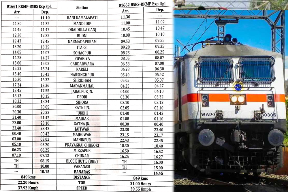 इसी प्रकार गाड़ी  संख्या 01662 द्वि-साप्ताहिक स्पेशल ट्रेन दिनांक 17.01.2025 से 21.02.2025 तक प्रत्येक मंगलवार एवं शुक्रवार को दोपहर 14:45 बजे बनारस से रवाना होगी और अगले दिन सुबह 11:30 बजे रानी कमलापति पहुंचेगी। (06 सेवाएं)