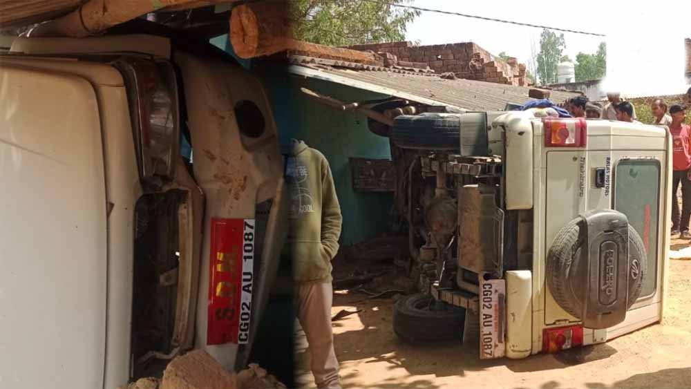 हादसे में प्रशासनिक अधिकारी घायल: सूरजपुर में बाइक सवार को बचाते वक्त घर में घुसा वाहन