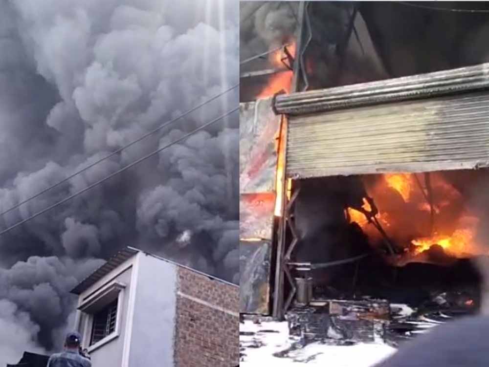 इंदौर में आग का कहर: स्क्रैप गोदाम धधका, कई किलोमीटर तक दिखा काला धुआं