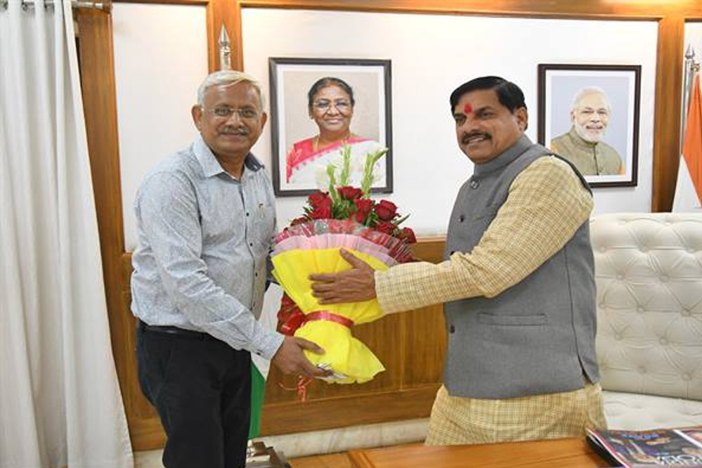 मुख्यमंत्री डॉ. यादव को कुलगुरू प्राफेसर डॉ. राकेश सिंघई ने उनकी स्वलिखित पुस्तक 'वक्रोक्ति' भेंट की।