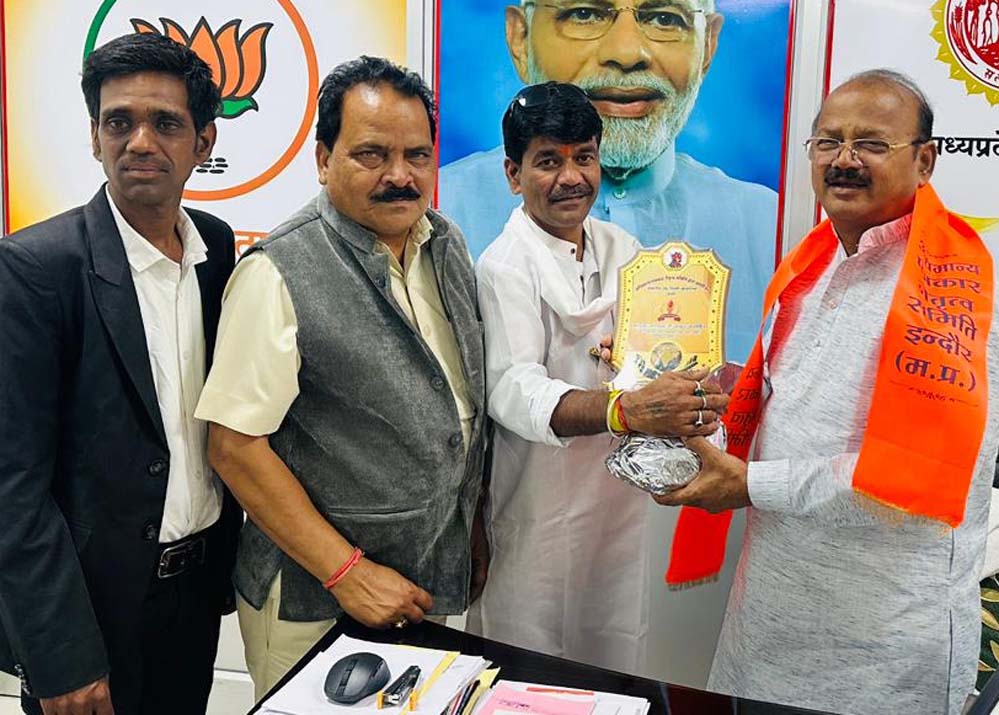 मध्य प्रदेश शासन के मंत्री भाई दिलीप जायसवाल से मुलाकात कर,समिति अध्यक्ष अधिमान्य पत्रकार नेतृत्व समिति डल्लू कुमार सोनी एवं मध्य प्रदेश समिति अध्यक्ष प्रीतम कुमार वर्मन,छत्तीसगढ़ प्रदेश महासचिव धर्मेंद्र वस्त्रकर  संयुक्त मुलाकात कर वार्तालाप कर स्मृति चिन्ह देकर देकर सम्मान करते हुए।