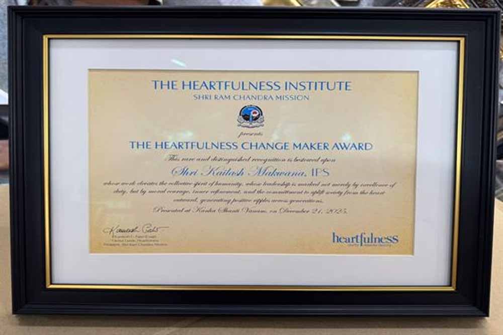 मध्यप्रदेश पुलिस में मानसिक स्वास्थ्य, तनाव प्रबंधन एवं संवेदनशील पुलिसिंग को सुदृढ़ करने की दिशा में किए गए दूरदर्शी प्रयासों के लिए पुलिस महानिदेशक श्री कैलाश मकवाणा को हार्टफुलनेस संस्था द्वारा ‘प्रथम हार्टफुलनेस चेंज मेकर अवार्ड’ से सम्मानित करने की घोषणा की गई। यह घोषणा हैदराबाद स्थित कान्हा शांतिवनम में आयोजित भव्य समारोह में भारत के माननीय उपराष्ट्रपति की गरिमामयी उपस्थिति में की गई।