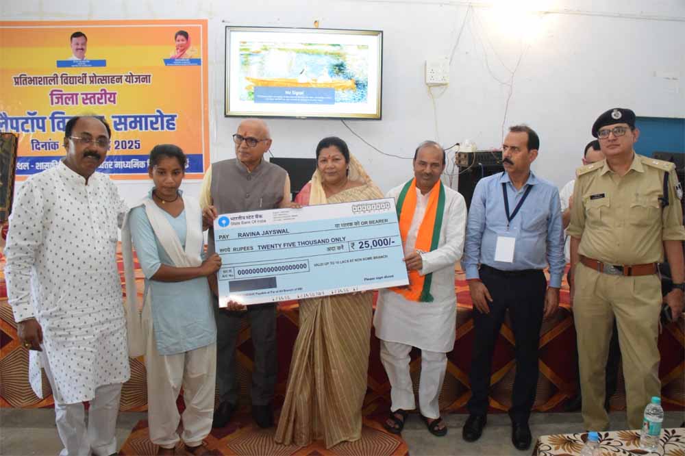 जिले की प्रभारी मंत्री श्रीमती सम्पतिया उईके मंत्री मध्यप्रदेश शासन लोक स्वाथ्य यांत्रिकी विभाग ने आज सरई स्थित शासकीय सांदीपनि उच्चतर माध्यमिक विद्यालय में आयोजित लैपटॉप वितरण समारोह में सम्मिलित हुई। समारोह के दौरान दौरान कक्षा 12वीं की बोर्ड परीक्षा में 75 प्रतिशत  या उससे अधिक अंक प्राप्त करने वाले विद्यार्थियों को प्रतिभाशाली विद्यार्थी प्रोत्साहन योजना के अंतर्गत 25 हजार की प्रोत्साहन राशि वितरित कर उन्हें उज्ज्वल भविष्य के लिए शुभकामनाएं दीं।  इस असवर पर प्रभारी मंत्री ने कहा कि  यह योजना राज्य सरकार द्वारा मेधावी विद्यार्थियों को प्रोत्साहित करने एवं उन्हें उच्च शिक्षा के लिए सशक्त बनाने की दिशा में एक सराहनीय पहल है। शिक्षा के क्षेत्र में राज्य सरकार द्वारा किए जा रहे ऐसे प्रयास निश्चित रूप से हमारे युवाओं को आत्मनिर्भर, जागरूक और राष्ट्र निर्माण में सहभागी बनाएंगे। कार्यक्रम में सांसद श्री राजेश मिश्रा , देवसर विधायक श्री राजेंद्र मेश्राम , कलेक्टर श्री चन्द्र शेखर शुक्ला, पुलिस अधीक्षक श्री मनीष खत्री, भाजपा  जिला अध्यक्ष श्री सुंदरलाल शाह सहित विद्यालय की छात्र छात्राए प्राचार्य एवं शिक्षक गण उपस्थित रहे।
