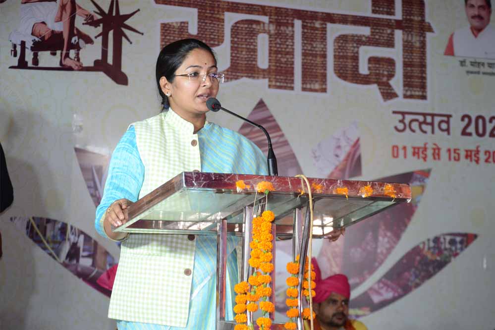 नगरीय विकास एवं आवास राज्यमंत्री श्रीमती प्रतिमा बागरी ने कहा कि देश के यशस्वी प्रधानमंत्री नरेन्द्र मोदी खादी एवं स्वदेशी उत्पादों को लगातार प्रोत्साहित करने का कार्य कर रहे हैं। खादी उद्योग भारतीय संस्कृति एवं परम्परा का प्रतीक है। उन्होंने कहा कि देश में विलुप्त होती जा रही कलाओं को कुटीर एवं ग्रामोद्योग विभाग संरक्षित करने का कार्य कर रहा है। जगह-जगह खादी उद्योगों को प्रोत्साहन मिल रहा है।