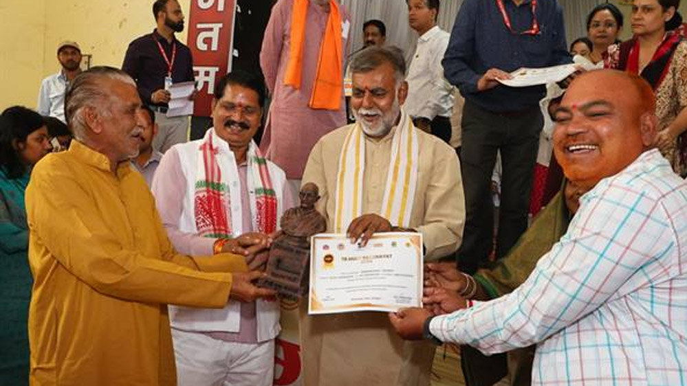 पंचायत एवं ग्रामीण विकास और श्रम मंत्री प्रहलाद सिंह पटेल के मुख्य आतिथ्य में टीबी मुक्त ग्राम पंचायत सम्मान समारोह कार्यक्रम पीजी कॉलेज नरसिंहपुर के आॉडिटोरियम में हुआ। मंत्री पटेल ने वर्ष 2024 के लिए जिले की टीबी मुक्त 161 ग्राम पंचायतों को प्रमाण पत्र एवं राष्ट्रपिता महात्मा गांधी जी की प्रतिमा प्रदान कर सम्मानित किया।