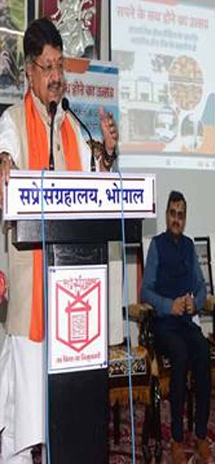 मंत्री श्री विजयवर्गीय ने कहा कि प्रधानमंत्री श्री नरेन्द्र मोदी ने वर्ष 2047 तक भारत को विकसित राष्ट्र बनाने का संकल्प लिया है। उनके इस संकल्प को शैक्षणिक संस्थानों को समृद्ध करके पूरा किया जा सकता है। उन्होंने कहा कि सप्रे संग्रहालय की शुरूआत एक छोटे स्वरूप में हुई थी। लगभग पिछले 4 दशकों में इस संस्थान ने अपनी पहचान राष्ट्रीय स्तर पर स्थापित कर ली है। पूर्व केन्द्रीय राज्य मंत्री श्री सुरेश पचौरी ने अपने उदबोधन में कहा कि श्री विजयदत्त श्रीधर ने अपनी लगन से भोपाल शहर को एक अमूल्य धरोहर दी है, जिसका लाभ लोकतंत्र के चौथे स्तंभ कहे जाने वाले पत्रकारों को निरंतर मिलता रहेगा। पूर्व केन्द्रीय मंत्री श्री पचौरी ने भारतीय स्टेट बैंक के सीएसआर फंड से दी जाने वाली मदद को सराहनीय बताया।