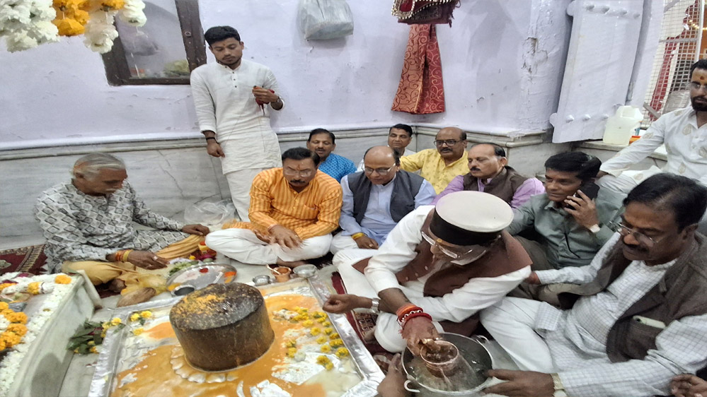 मनकामेश्वर महादेव नेवरी मंदिर प्रांगण में मंत्री विश्वास कैलाश सारंग महाआरती में उपस्थित हुए