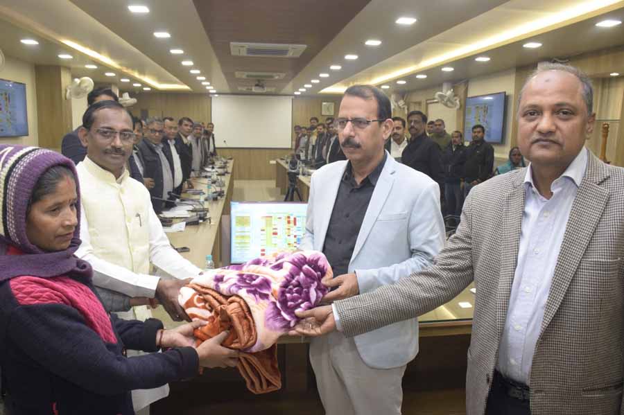 ठण्ड से सिकुड़ते लोगो को विधायक एवं कलेक्टर ने कम्बल का किया वितरण