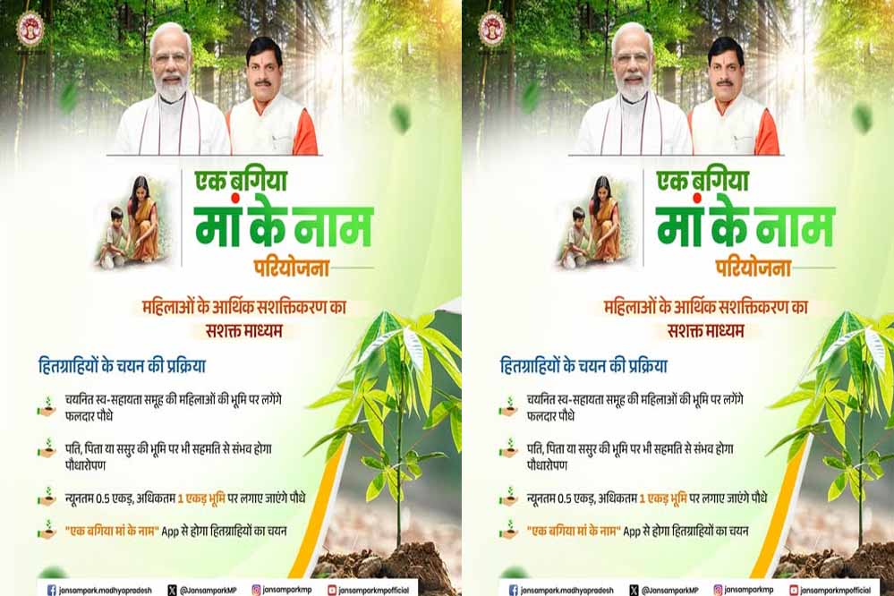 “एक बगिया माँ के नाम’’ परियोजना अंतर्गत प्रदेश की 31 हजार से अधिक स्वयं सहायता समूह की महिलाओं को लाभ मिलेगा। इनकी निजी जमीन पर 30 लाख से अधिक फलदार पौधे लगाएं जाएंगे, जो समूह की महिलाओं की आर्थिक समृद्धि का आधार बनेंगे।