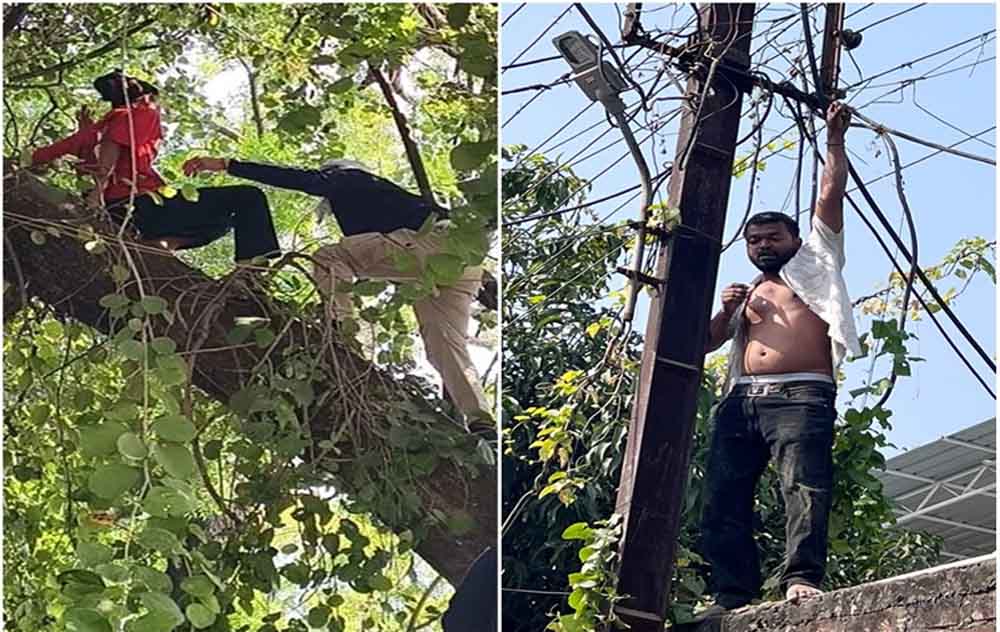 MP News: इंदौर में अवैध मकान हटाने पर युवती पेड़ पर चढ़ी, युवक ने पकड़ा बिजली का तार