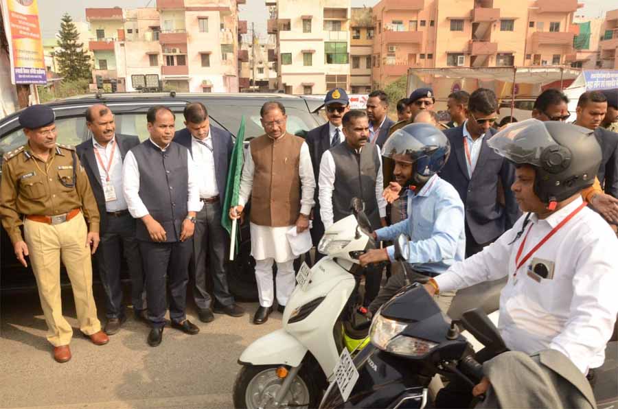 प्रदेश में मनाए जा रहें 36वें राष्ट्रीय सड़क सुरक्षा माह के दौरान आज मुख्यमंत्री विष्णुदेव साय ने हेलमेट लगाकर बाईक चलाकर प्रदेशवासियों को हेलमेट लगाने के प्रति जागरूक होने का संदेश दिया. मुख्यमंत्री ने आज राजधानी के रोहणीपुरम गोल चौक पहुंचकर बाईकर्स और पुलिस अधिकारी-कर्मचारियों के साथ बाईक रैली में हिस्सा लिया. उन्होंने दोपहिया वाहन चालकों सहित चार पहिया वाहन चलाने वाले लोगों से यातायात नियमों का पालन करने की अपील की. इस दौरान साय ने हरी झण्डी दिखाकर भव्य बाईक रैली को रवाना भी किया. स्वंयसेवी संस्थाओं ने नुक्कड़ नाटकों के माध्यम से यातायात नियमों का पालन करने से होने वाले फायदों के बारे में भी लोगों को जागरूक किया.