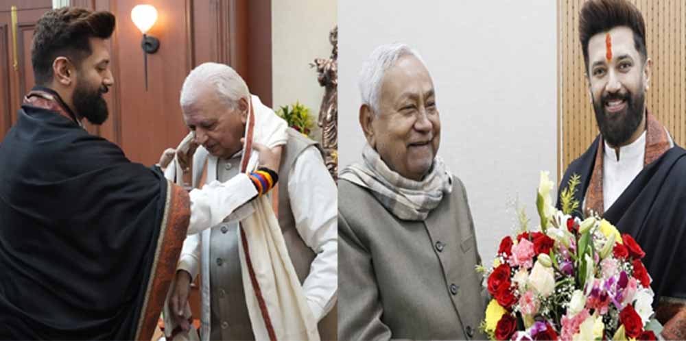 चिराग पासवान ने मुख्यमंत्री नीतीश कुमार से उनके आवास पर मुलाकात कर नववर्ष की शुभकामनाएं दीं। इसके बाद वे राजभवन पहुंचे, जहां उन्होंने राज्यपाल आरिफ मोहम्मद खान से भेंट की। इस दौरान लोजपा (रामविलास) के प्रदेश अध्यक्ष राजू तिवारी और बिहार सरकार के मंत्री संजय पासवान भी मौजूद रहे।