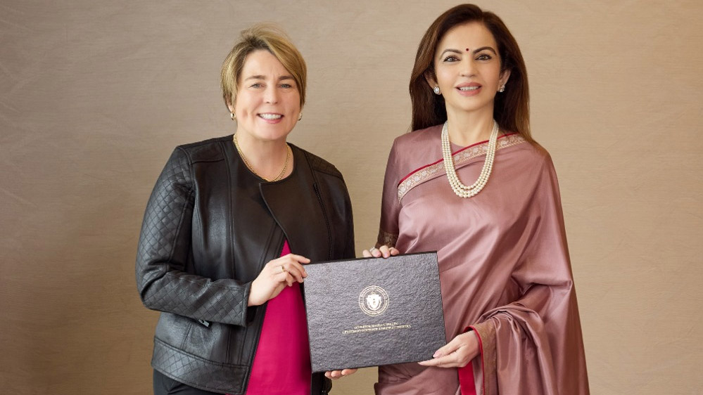 संस्थापक अध्यक्ष श्रीमती नीता अंबानी को मैसाचुसेट्स की गवर्नर माननीय मौरा हीली द्वारा प्रतिष्ठित गवर्नर प्रशस्ति पत्र से सम्मानित किया गया, जिसमें उन्हें एक दूरदर्शी नेता, दयालु परोपकारी और सच्चे वैश्विक परिवर्तनकर्ता के रूप में मान्यता दी गई। यह प्रशस्ति पत्र श्रीमती अंबानी के शिक्षा, स्वास्थ्य सेवा, खेल, कला, संस्कृति और महिला सशक्तिकरण में परिवर्तनकारी प्रभाव के लिए आजीवन समर्पण का सम्मान करता है - जिसने भारत और उसके बाहर लाखों लोगों के जीवन को प्रभावित किया है।