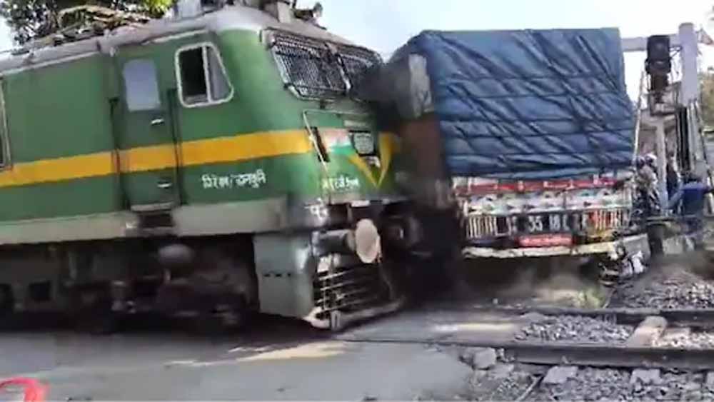 खुले फाटक ने ली भारी कीमत: देवघर में ट्रेन और ट्रक की टक्कर, बाइकें बर्बाद