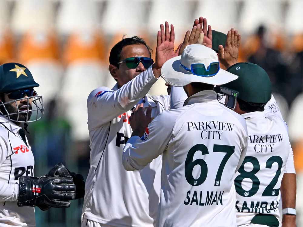 पाकिस्तान के स्पिनर्स का डंका बजा और मेहमानों ने अपने हथियार डाल दिए, नोमान अली ने हैट्रिक समेत खोला पंजा