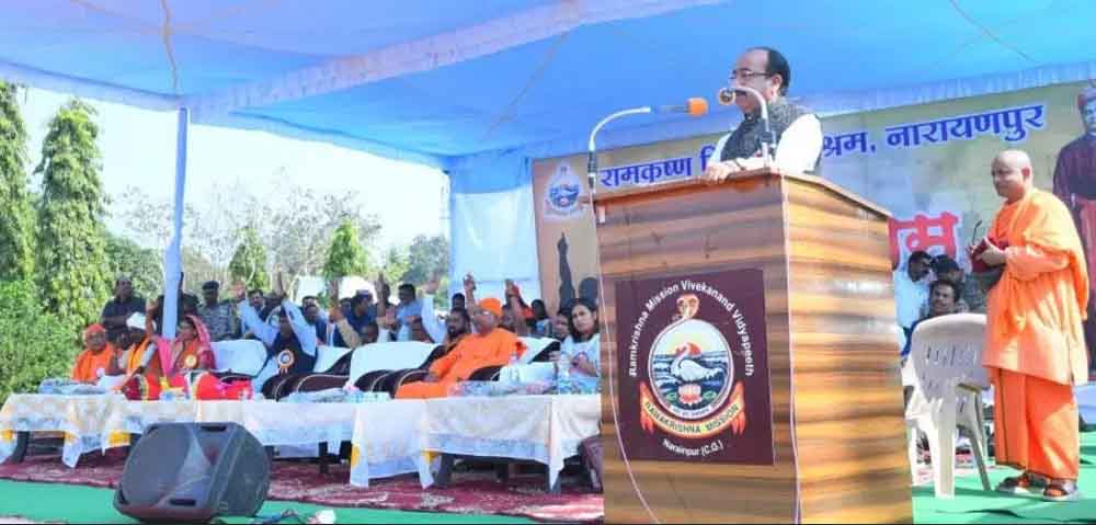 उप मुख्यमंत्री श्री अरूण साव ने कार्यक्रम को संबोधित करते हुए कहा कि प्रदेश सरकार युवाओं को आगे बढ़ाने के लिए हर संभव मदद कर रही है। युवाओं को अच्छी शिक्षा प्रदान करने के लिए जिले के अंदरूणी क्षेत्रों में स्वामी विवेकानंद रामकृष्ण मिशन आश्रम संचालित की जा रही है, जिसमें नारायणपुर जिले के युवाओं को शिक्षा के साथ साथ सांस्कृति, सामाजिक उत्थान के लिए कार्य किये जा रहे है। उन्होेंने कहा कि स्वामी विवेकानंद का जन्म 12 जनवरी 1863 में हुआ था। स्वामी विवेकानंद ने कुशाग्रबुद्धि के साथ समाज को अच्छी सभ्यता का विकास करने में महत्वपूर्ण योगदान दिया। उन्होंने भारत की सांस्कृति, मान सम्मान के लिए भारत का प्रतिनिधित्व करते हुए 09 सितम्बर 1893 में शिकागो के धर्म सभा में जो उपदेश दिये वह अस्मरणीय है। स्वामी विवेकानंद के आश्रमों में विभिन्न प्रकार के गतिविधियां करते हुए समाज के उत्थान के लिए कार्य किये जा रहे हैं जो प्रासांगिक एवं ऐतिहासिक है। बच्चों को शिक्षा के साथ आत्मनिर्भर और कलात्मक दृष्टि से प्रशिक्षण दिये जा रहे है, जिससे उनके जीवन में समृद्धि आयेगी। उन्होेंने कहा कि जो बच्चें थोड़ी सी असफलता के कारण निराश होकर दूसरे रास्ते में चले जाते हैं वे हमेशा असफल होते हैं। मनुष्य को कभी निराश होने की आवश्कता नहीं है, उन्हें उर्जावान, साहस और आत्म विश्वास और भयमुक्त होकर आगे बढ़ना चाहिए, जिससें जीवन में सुखमय एवं समृद्धि प्राप्त होगी।