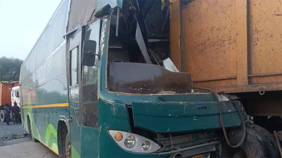 खड़े कोयले से भरे ट्रेलर से टकराई यात्री बस, एक की मौत, 23 घायल