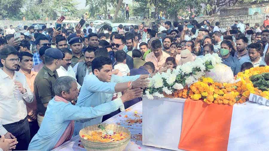 पुलिस अधीक्षक विजय अग्रवाल ने श्रद्धांजलि देते हुए कहा कि बीजापुर नक्सली हमले में शहीद जवान के पार्थिव शरीर को चॉपर के माध्यम से जिला मुख्यालय लाया गया, यहां उनको श्रद्धांजलि दी गई. उनके गृह ग्राम गुर्रा में राजकीय सम्मान के साथ उन्हें अंतिम विदाई दी जाएगी. प्रशासन ने इसके लिए पूरी व्यवस्था कर ली है.