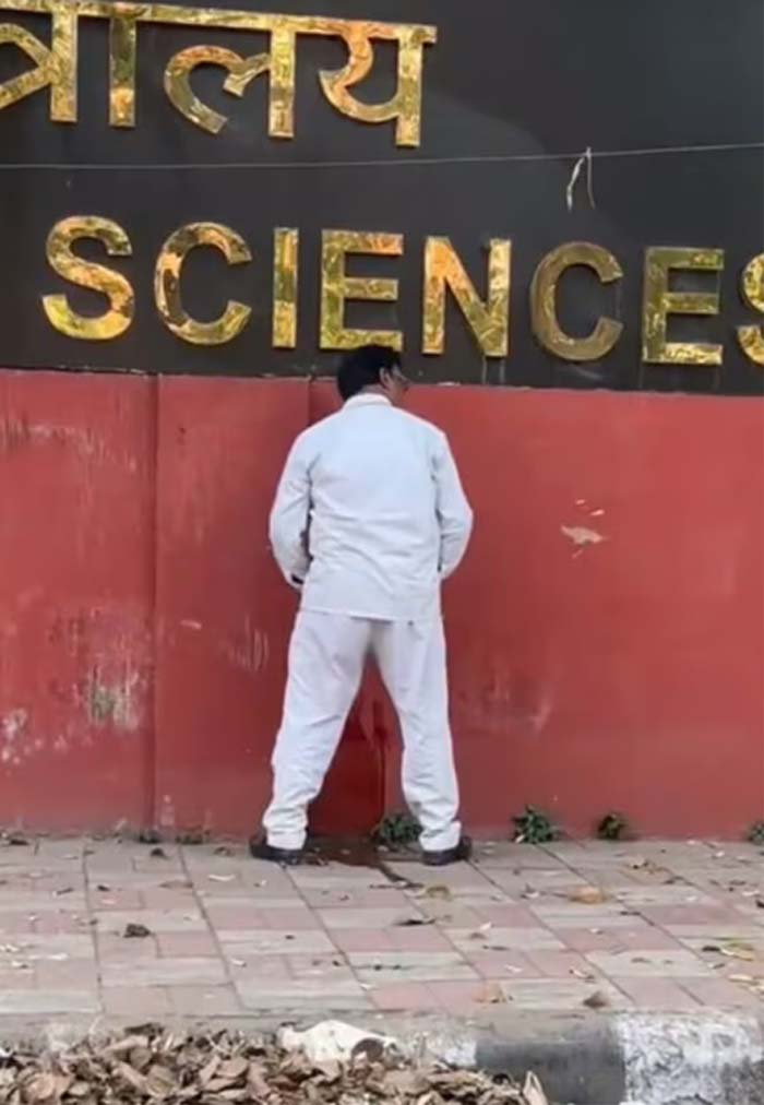 6 सेकेंड का एक वीडियो सोशल मीडिया पर तेजी से वायरल हो रहा है, जिसमें एक सफेंद पैंट शर्ट पहना एक शख्स फुटपाथ पर पेशाब करता दिख रहा है। उसके सामने 'पृथ्वी विज्ञान मंत्रालय' लिखा है। लोदी रोड स्थित इस मंत्रालय के बाहर किसी कार चालक ने फुटपाथ पर पेशाब करते शख्स को टोका। वह वीडियो बनाते हुए कहता है, 'अरे चाचा, वो मूत्रालय नहीं मंत्रालय लिखा है।'