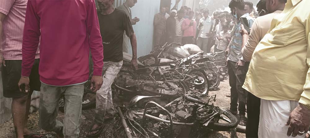 कृषि उपज मंडी गोदाम से धुआं निकलता देख लोग मौके पर पहुंचे, लगी भीषण आग, 100 क्विंटल सोयाबीन व 8 बाइक खाक
