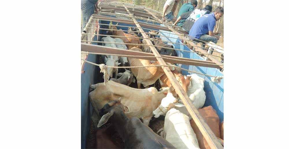 32 गौवंश को ठूंस-ठूंस कर कत्लखाने ले जा रहे ट्रक पुलिस ने पकड़ा , आरोपी फरार