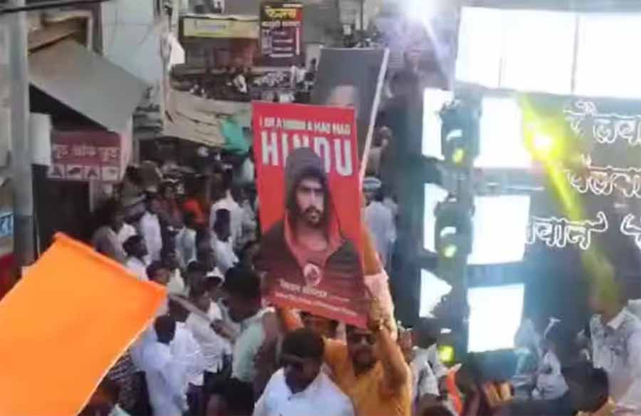 अहिल्यानगर का जो वीडियो सामने आया है उसमें छत्रपति शिवाजी महाराज की जयंती पर निकाले जुलूस में एक युवक लॉरेंस बिश्नोई का पोस्टर लहरा रहा है, जिसपर “I am Hindu” लिखा है। हैरत की बात ये है कि उस पोस्टर में दूसरी तरफ बीजेपी नेता और मंत्री नितेश राणे की तस्वीर है, जिन्हें “जिहादियों का बाप” बताया गया है। वहीं संभाजी नगर में लिखा गया था कि “हम गांधी को नहीं छत्रपति शिवाजी महाराज और महाराणा प्रताप जैसी आंधी को मानने वाले हैं।