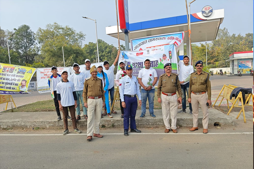 जो दिनांक 01.01.2025 से आज दिनांक 16.01.2025 कुल 417 वाहनों की चालानी कार्यवाही कर 262900 रुपये समन शुल्क वसूल किया जाकर निर्धारित मद में जमा कराये गए है एवं आज दिनांक 17.01.2025 को क़स्बा उमरिया के गाँधी चौक, न्यायलय चौक, नया बस स्टैंड, पुलिस वेलफेयर पेट्रोल पंप, रानी दुर्गावती चौक में दो पहिया वाहन चालकों जो हेलमेट लगा कर चल रहे है व चार पहिया वाहन चालक जो सीट बेल्ट लगाकर चल रहे है एवं जो यातायात नियमों का पालन कर रहे है उन्हें थाना यातायात स्टॉफ एवं खेल युवा कल्याण विभाग के सदस्यो द्वारा गुलाब का फूल दिया जाकर सम्मान किया गया । जिले के माननीय मानपुर विधायक एवं नागरिक द्वारा पुलिस की इस पहल की सराहना की